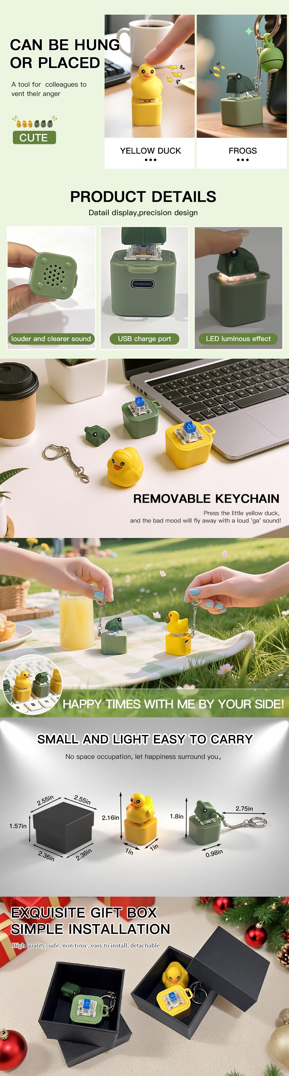 Frog Croaking & Quacking Duck Fidget Toy Keychain with Lights - Stress Relief Rechargeable | 50% OFF, FREE SHIPPING Toy