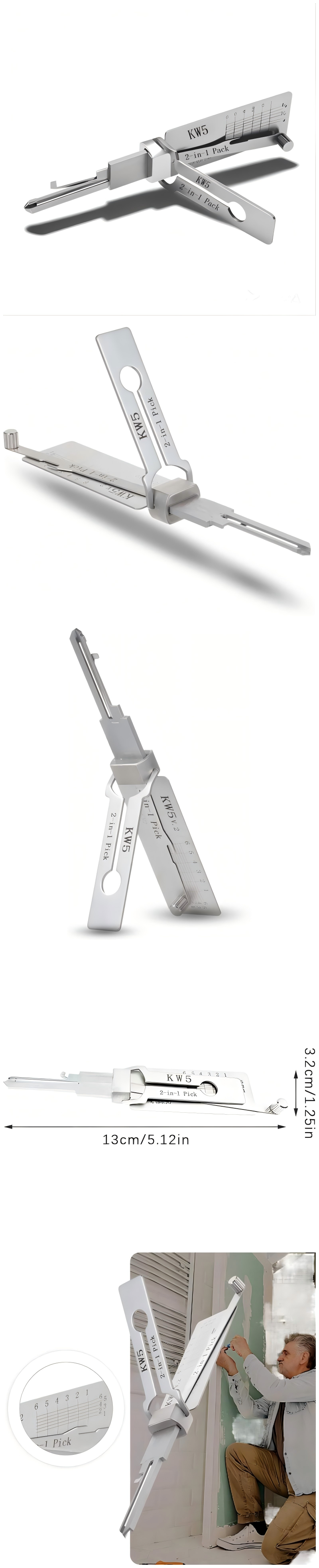 VERSATILE DESIGN: 2-in-1 tool DURABLE CONSTRUCTION: Made from high-quality stainless steel for long-lasting performance and resistance to wear and tear COMPACT SIZE: Portable design makes it easy to carry in your pocket or toolbox while maintaining professional functionality PRECISE MEASUREMENTS: Built-in measurement scale allows for accurate adjustments and positioning during use Lock Picking Tools