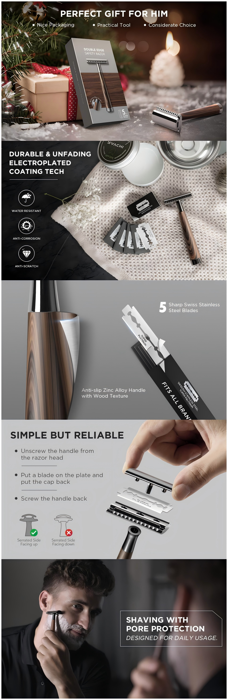 Swiss stainless steel blades deliver lasting sharpness for clean, precise shaves every time. - 🧩 Simple Assembly, Thoughtful Protection